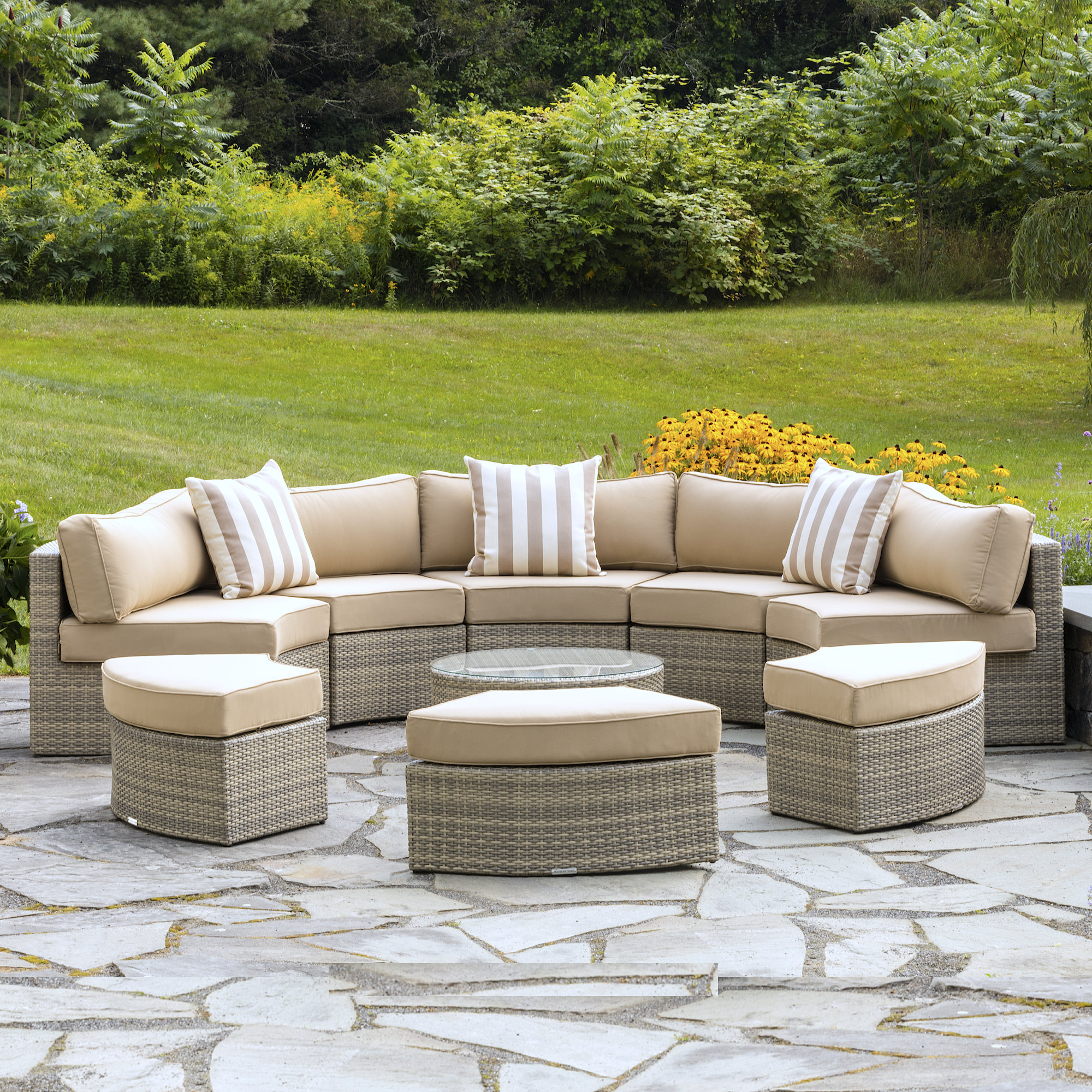 While patios may be the place to seek shade, pool areas offer a combination of refreshing water and plenty of sunshine during the day. It really does require a lot more care but it also see: Patio furniture sets constructed from wicker are extremely low maintenance. Modern outdoor wicker circular patio sectional with stone top fire table.